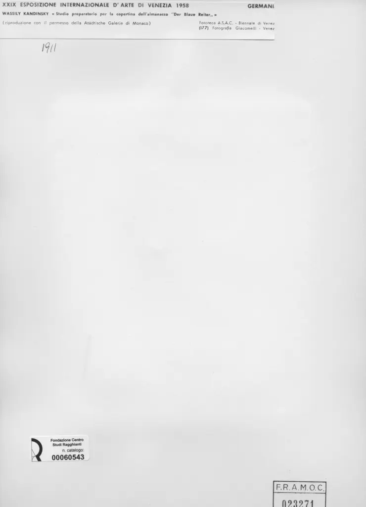 Giacomelli , Kandinsky, Wassili - sec. XX - Studio preparatorio per la copertina dell'almanacco "Der Blaue Reiter" , retro