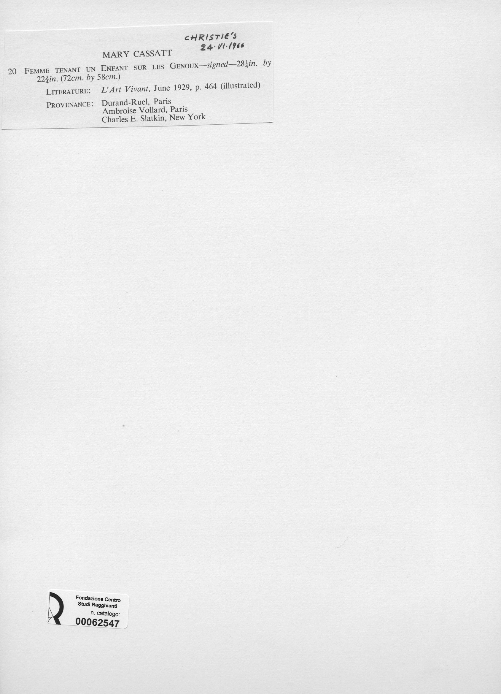 • Anonimo , Cassatt, Mary - sec. XIX - Femme tenant un Enfant sur les Genoux , fronte