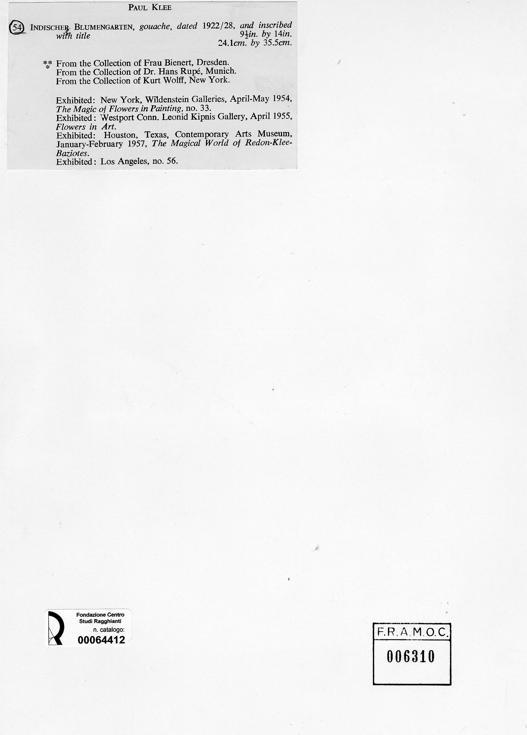 Anonimo , Klee, Paul - sec. XX - Indischer Blumengarten