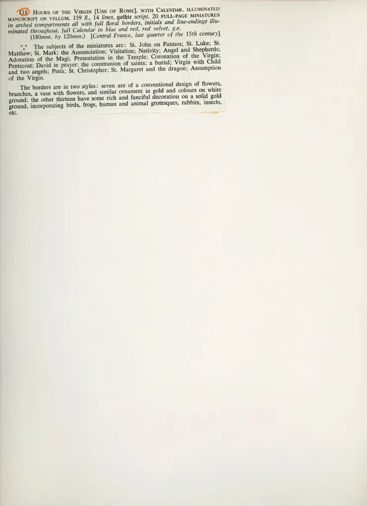 Anonimo francese - sec. XV, ultimo quarto - Libro d'Ore della Vergine all'uso di Roma con Calendario