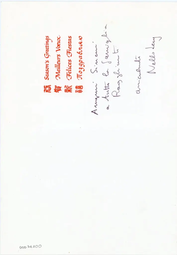 Auguri Sinceri a tutta la famiglia Ragghianti/ cordialmente/ Nello Levy