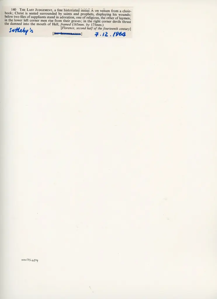 pubblicazione di riferimento (Sotheby's & co. (London, England), Catalogue of sales, 1964)