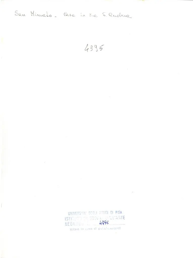 Ragghianti fonda e dirige la "Raccolta Pisana di Saggi e Studi" a cura dell'Istituto di Storia dell'Arte dell'Università di Pisa. La terza serie, edita da Marchi & Bertalli di Firenze, comprende il volume "San Miniato al Tedesco" (1967) di Maria Laura Cristiani Testi, la copia di tale documentazione fotografica è in parte conservata presso questa fototeca. Gli edifici consistono in abitazioni private site in via S. Andrea.