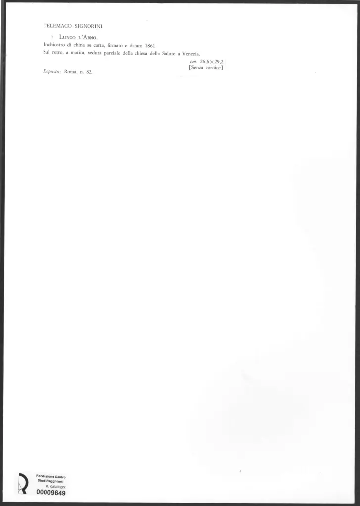 Signorini, Telemaco, Lungo l'Arno. Sul retro, a matita, veduta parziale della Chiesa della Salute a Venezia