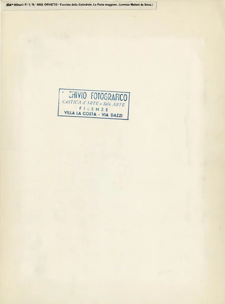 De Francovich G., Lorenzo Maitani scultore e i bassorilievi della facciata del Duomo di Orvieto in "Bollettino d'Arte", 7, 1927 - 1928, pp. 339 - 372 (datazione 1325 - 1329); Carli E., La scultura nel Duomo di Orvieto, Bergamo 1947; Toesca P., Il Trecento, Torino 1951, pp. 278 - 292; Previtali G., Studi sulla scultura gotica in Italia, Torino 1991, pp. 5 - 15, 16 - 30, 45 - 82; Tigler G., Orvieto 1284 - 1334. Le sculture della parte bassa della facciata, in "La facciata del Duomo di Orvieto, teologia in figura", Cinisello Balsamo 2002, pp. 12 - 25 (datazione 1319 - 1321); Bellosi L., I rapporti artistici fra Siena e Orvieto nel Trecento. Lorenzo Maitani e il "Maestro sottile, in "Arti a confronto. Studi in onore di Anna Maria Matteucci" a cura di Lenzi D., Bologna 2004, pp. 29 - 35.