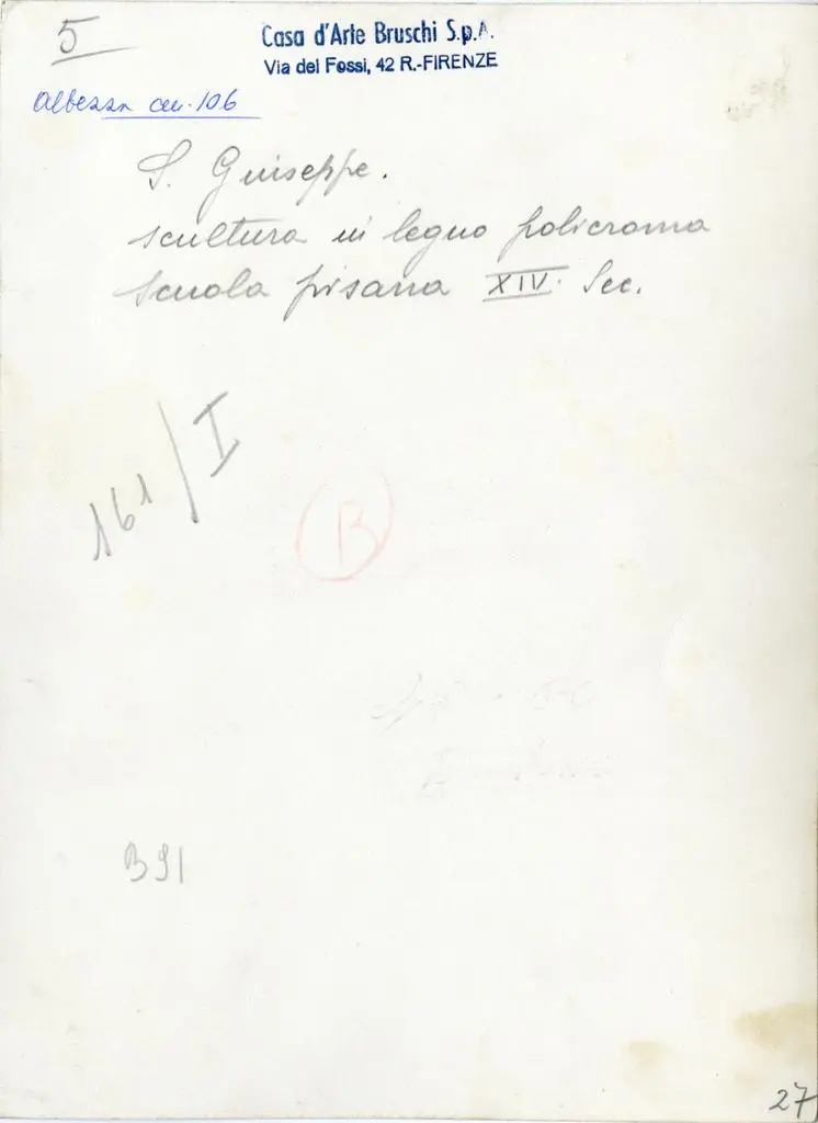 • Anonimo , S. Giuseppe - scultura in legno policroma scuola pisana XIV Sec.