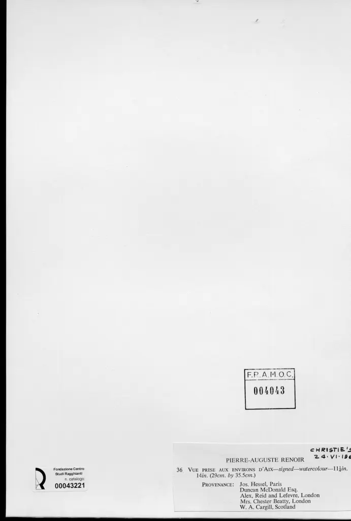 Anonimo , Renoir, Pierre Auguste - sec. XIX - Vista d'Aix , fronte