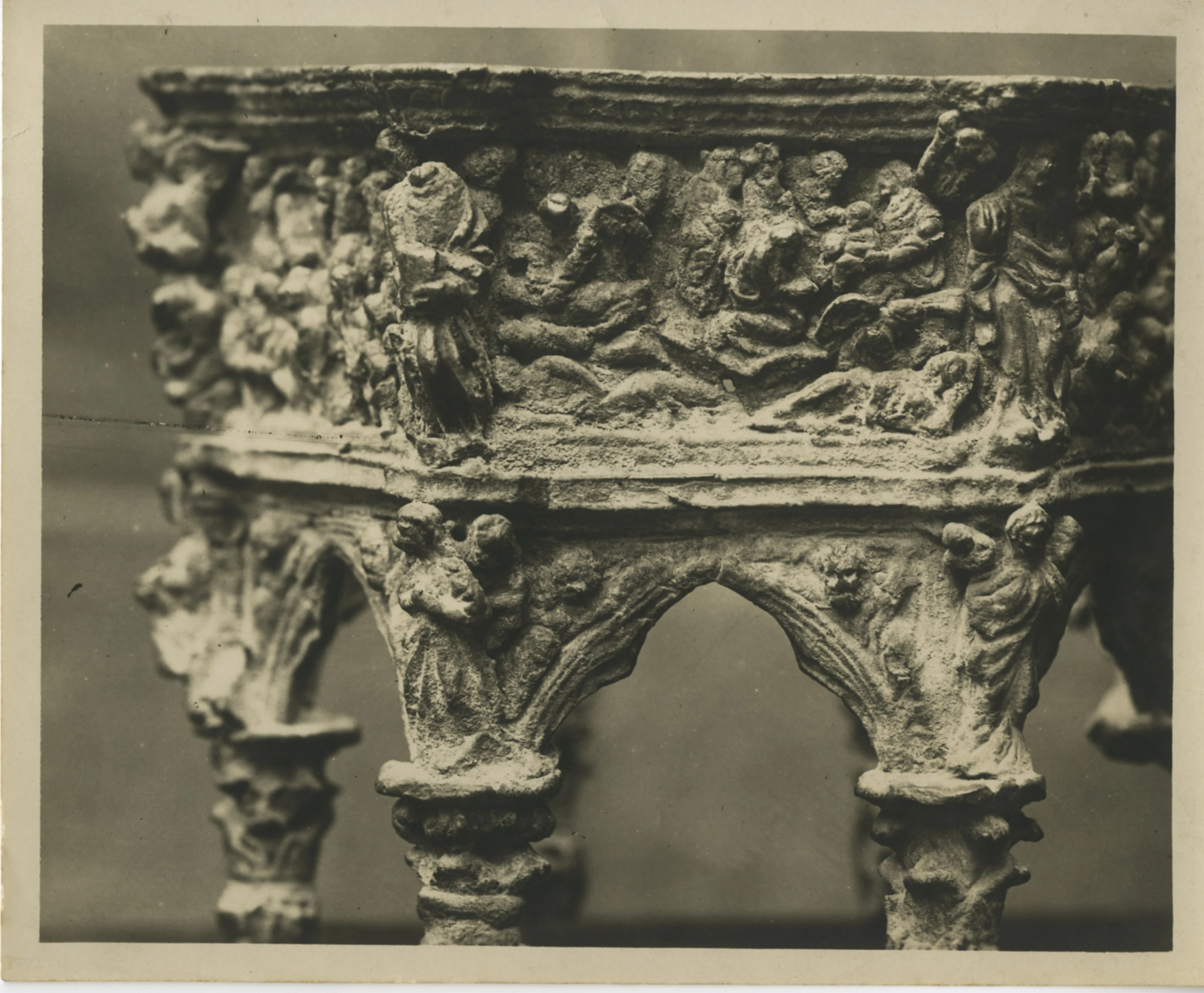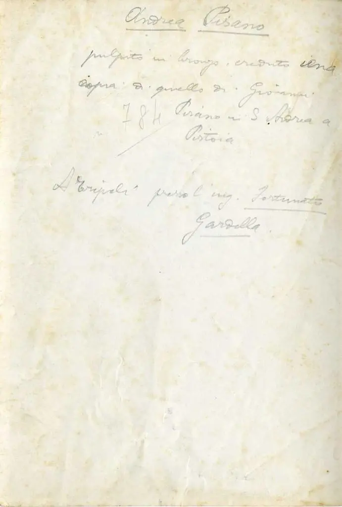 L'opera, in bronzo, sembra voler riprodurre un bozzetto del pulpito marmoreo di Giovanni Pisano in Sant'Andrea a Pistoia.