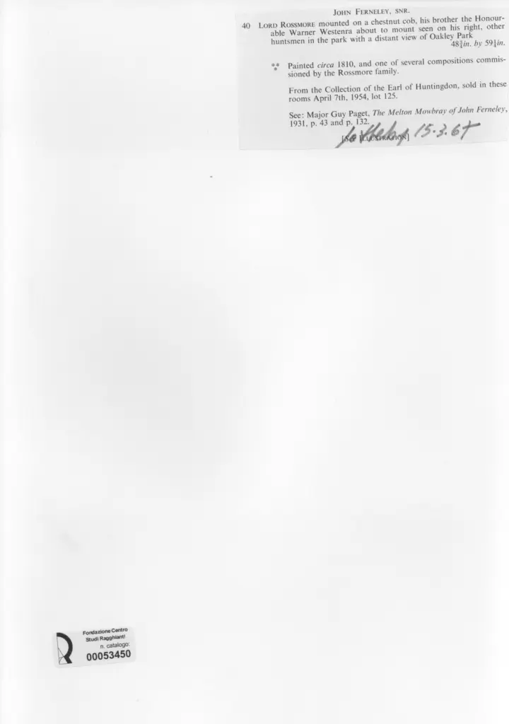 Paget G., The Melton Mowbray of John Ferneley, 1931, pp. 43, 132