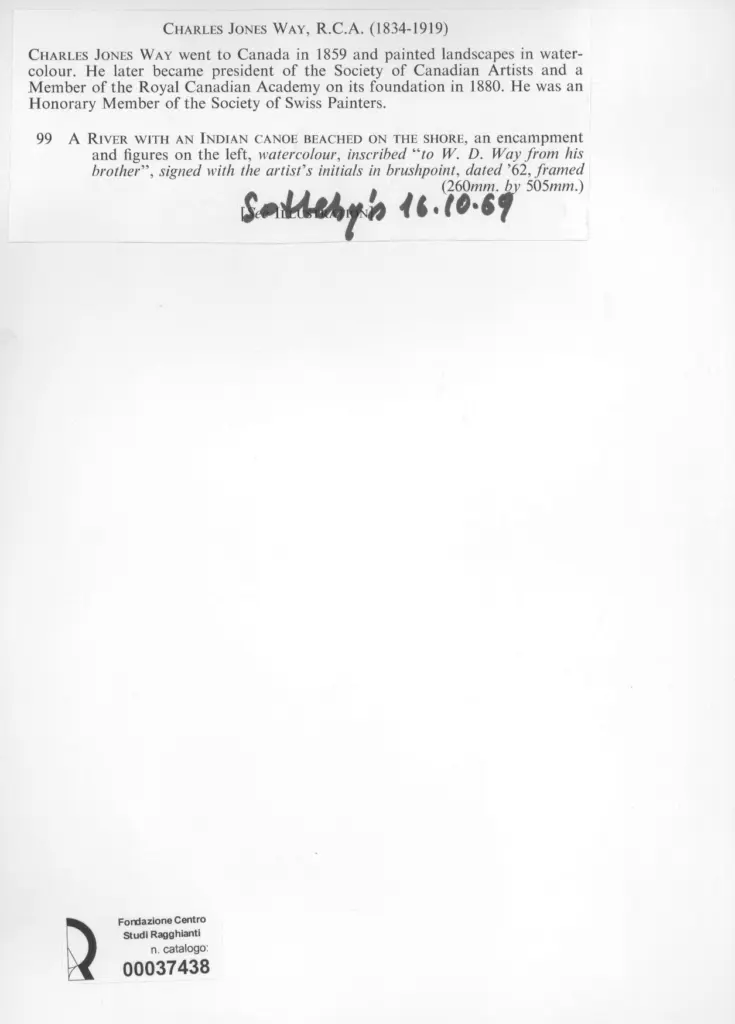 Way, Charles Jones, A river with an Indian canoe beached on the shore