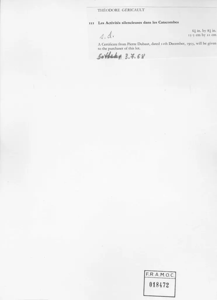 Géricault, Théodore, Les Activités silencieuses dans les Catacombes