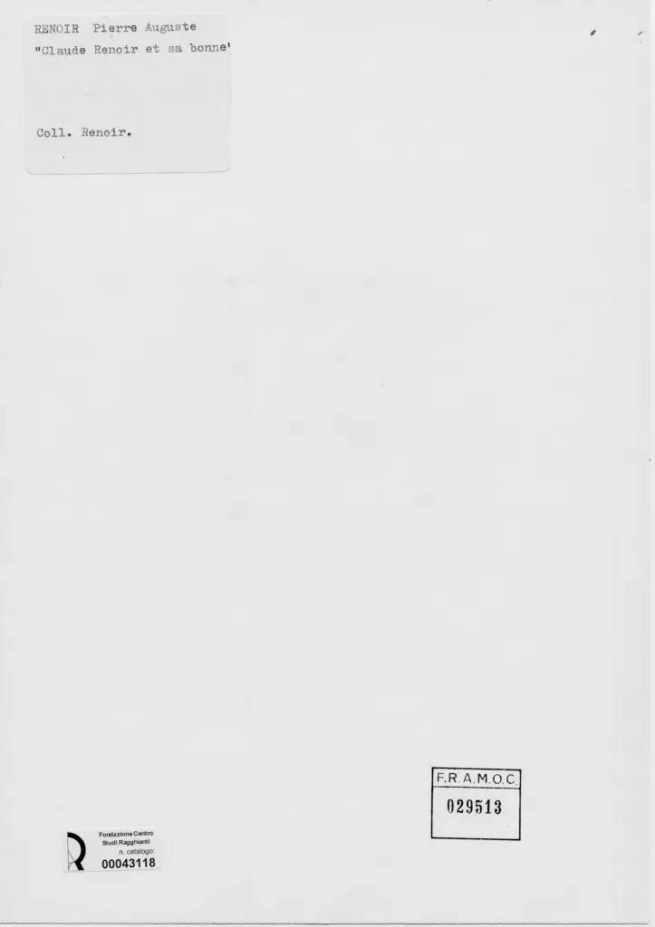 Anonimo , Renoir, Pierre Auguste - sec. XIX - Claude Renoir e il suo bambino , retro
