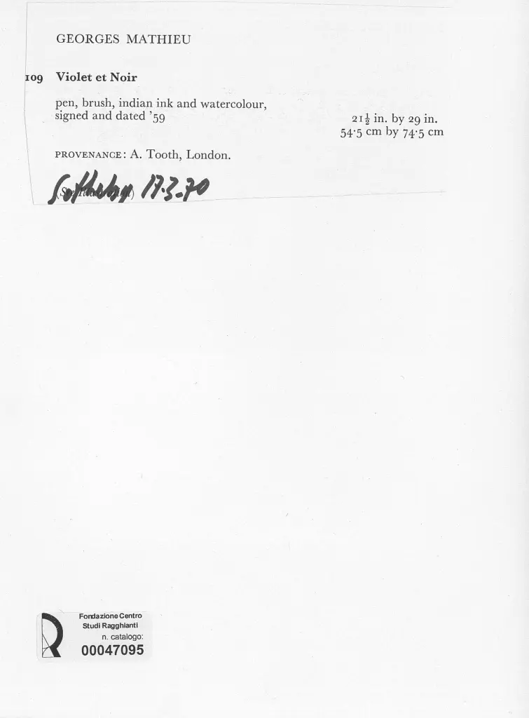 Anonimo , Mathieu, Georges - sec. XX - Violet et noir , fronte