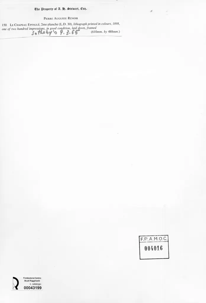 • Anonimo , Renoir, Pierre Auguste - sec. XIX - Il cappello con spillone , retro