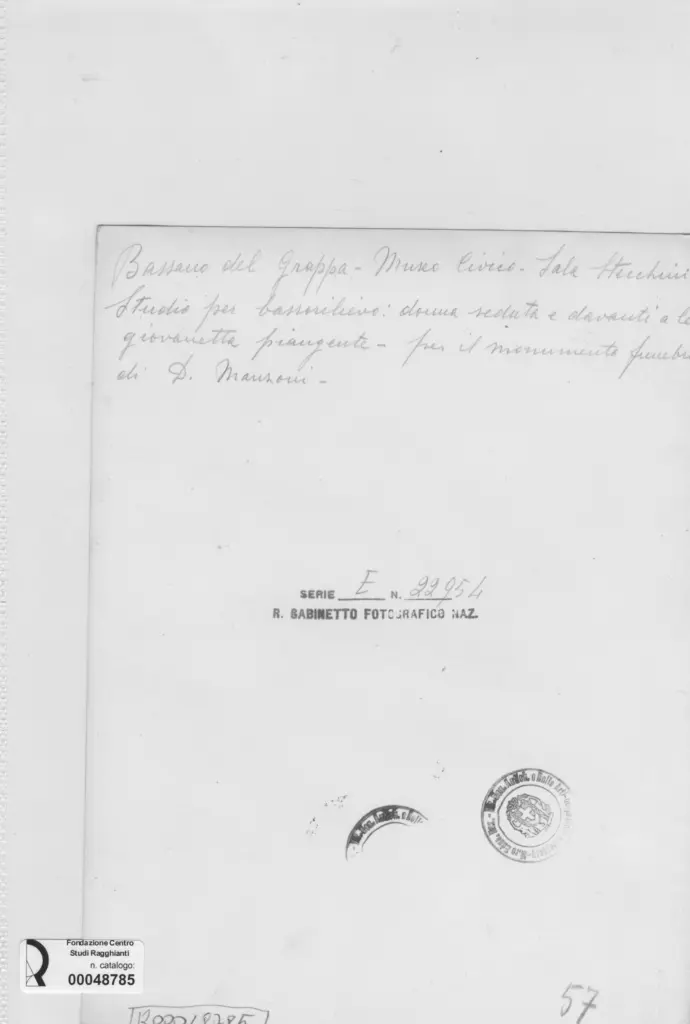 Studio per bassorilievo, donna seduta e davanti a lei giovinetta piangente, per il monumento funebre di D. Manzoni