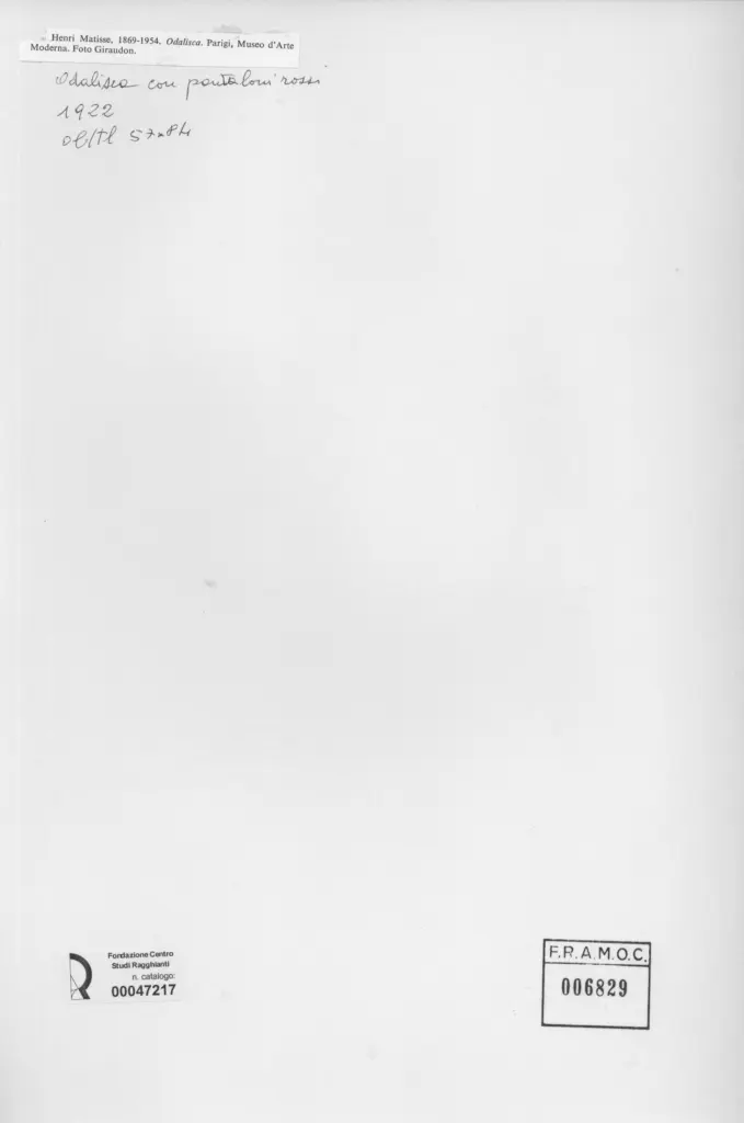 Giraudon , Matisse, Henri - sec. XX - Odalisca con pantaloni rossi , fronte