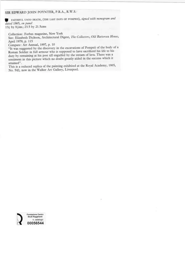 • Anonimo , Poynter, Edward John - sec. XIX - Faithful into Death (the Last Day of Pompeii) , fronte