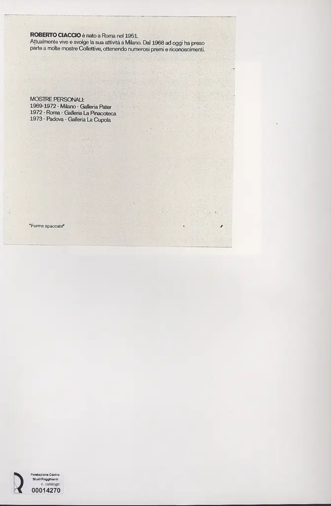 Ciaccio, Roberto, Forme spaccate