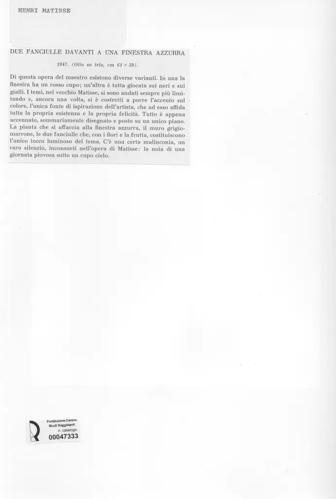 Matisse, Henri, Due fanciulle davanti ad una finestra azzurra