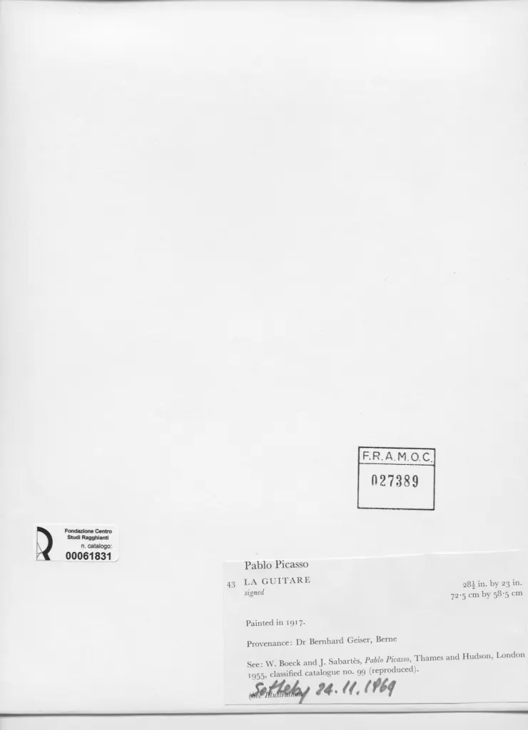 • Anonimo , Picasso, Pablo - sec. XX - La guitare , fronte