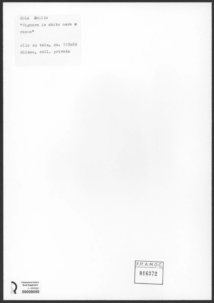 Gola, Emilio , Signora in abito nero e rosso