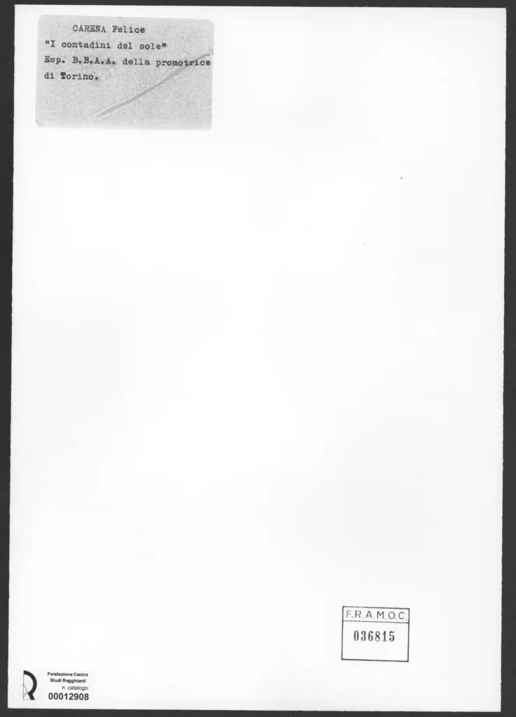 Anonimo , Carena, Felice - sec. XX - I contadini del sole , fronte