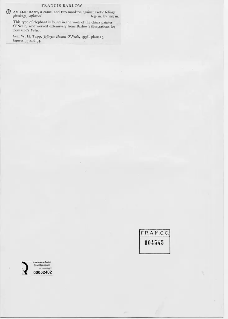 Barlow, Francis, - paesaggio esotico con elefante, cammello e due scimmie