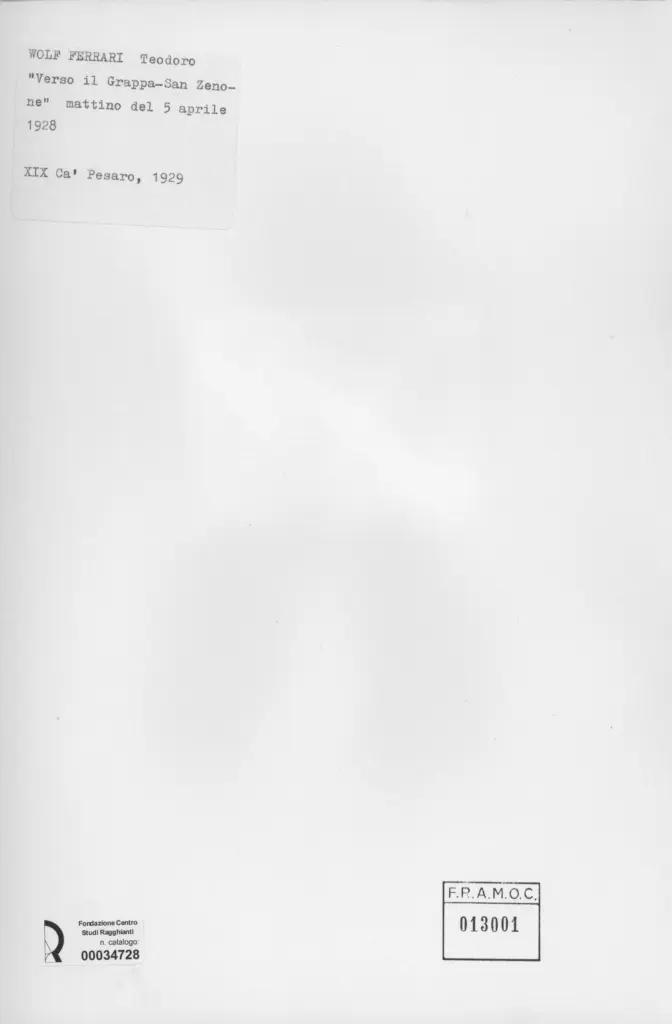 Wolf Ferrari, Teodoro, Verso il Grappa - San Zenone" mattino del 5 aprile 1928 -