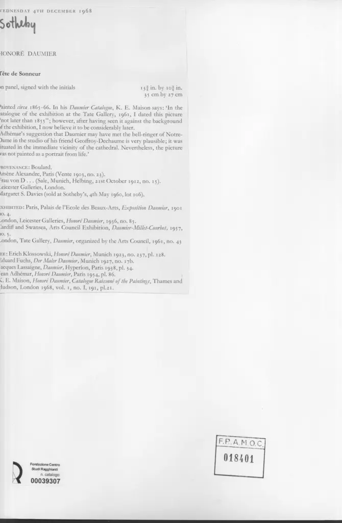 Maison K.E., Honoré Daumier, Catalogue Raisonné of the Paintings, 1968, vol. I, no. I, 191, pl. 21,