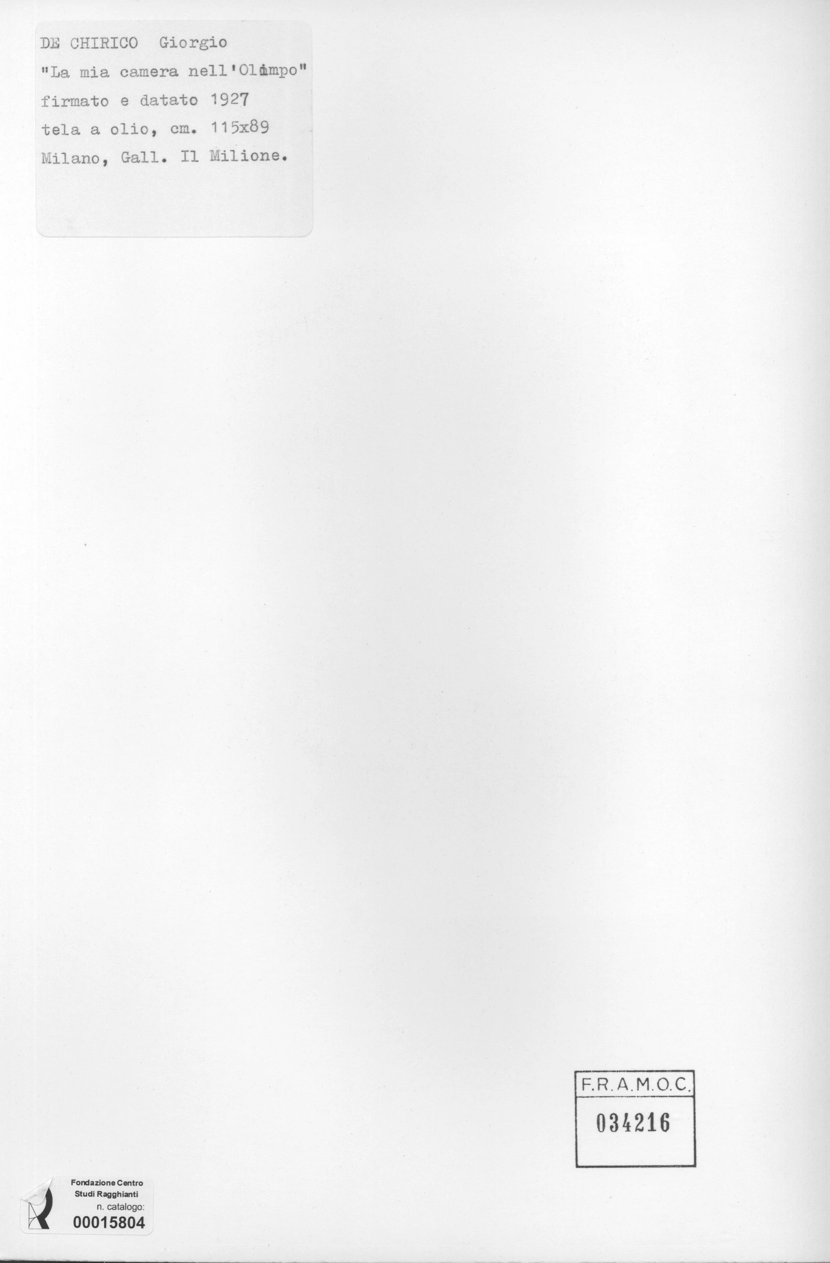 De Chirico, Giorgio, La mia camera nell'Olimpo