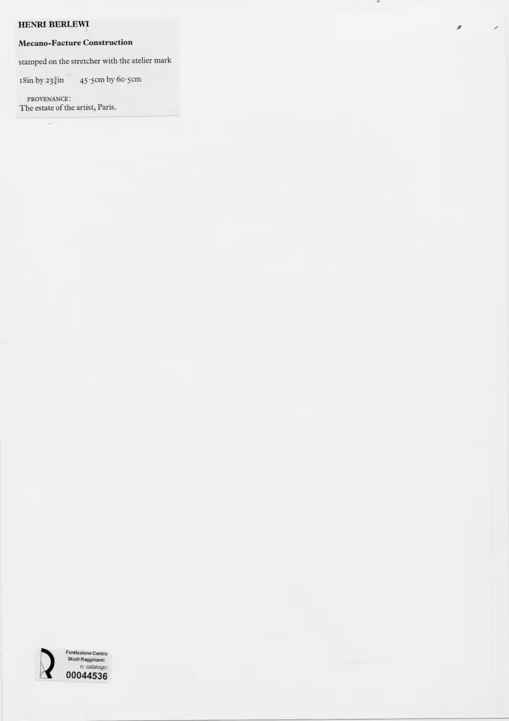 Anonimo , Berlewi, Henryk - sec. XX - Mecano - Facture Construction , fronte