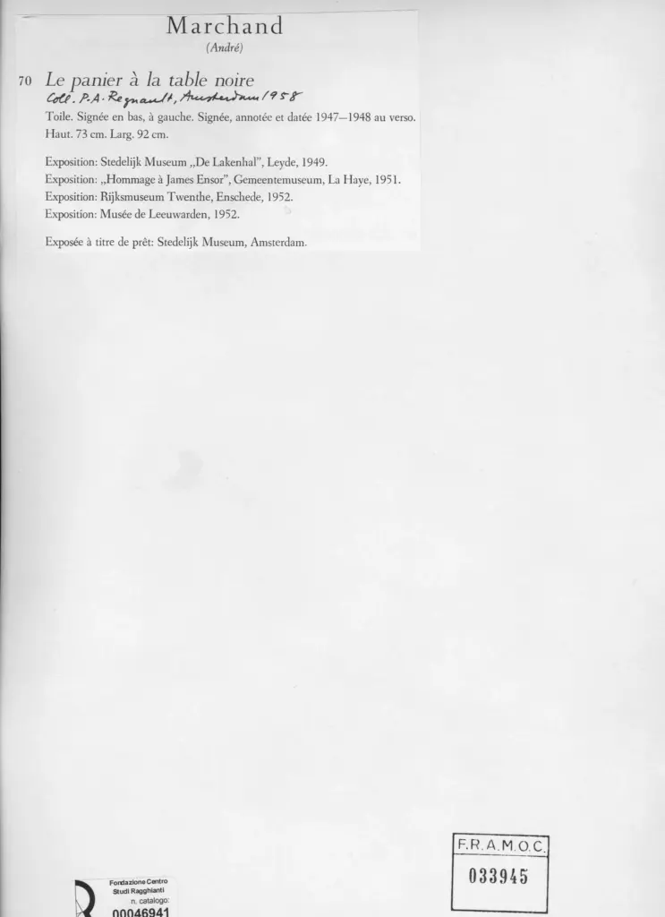 Marchand, André, Il paniere sulla tavola nera