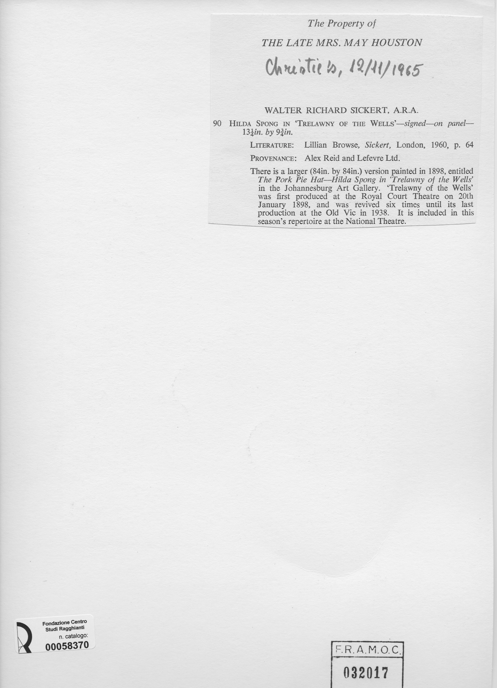 Anonimo , Sickert, Walter Richard , fronte