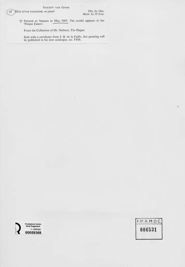 Van Gogh, Vincent, Tête d'une paysanne