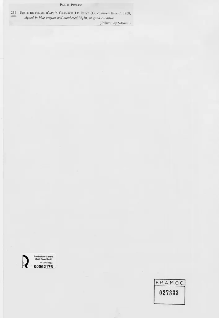 Picasso, Pablo, Buste de Femme, da Cranach il giovane