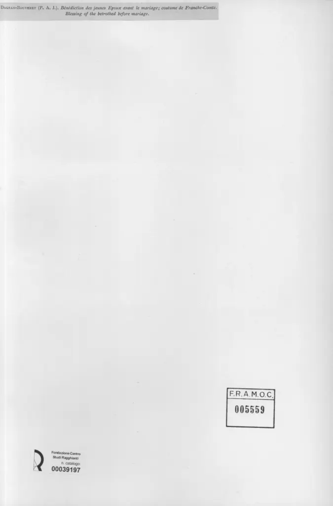 Bénediction des jeunes Epoux avant le mariage;coutume de Franche-Comté -