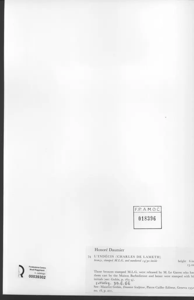Gobin M., Daumier Sculpteur, 1952, p. 201, no. 18,