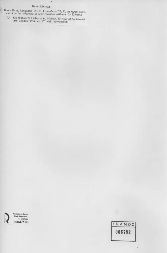 Liebermann W.S., Matiisse, 50 years of his Graphic Art, 1957, n. 97