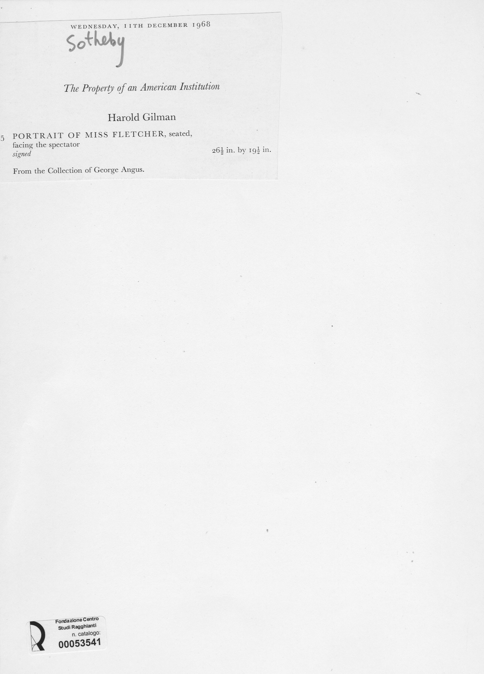 Gilman, Harold, Portrait of Miss Fletcher