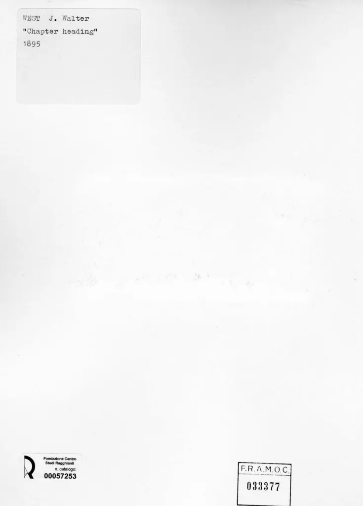 West, Walter, Chapter heading