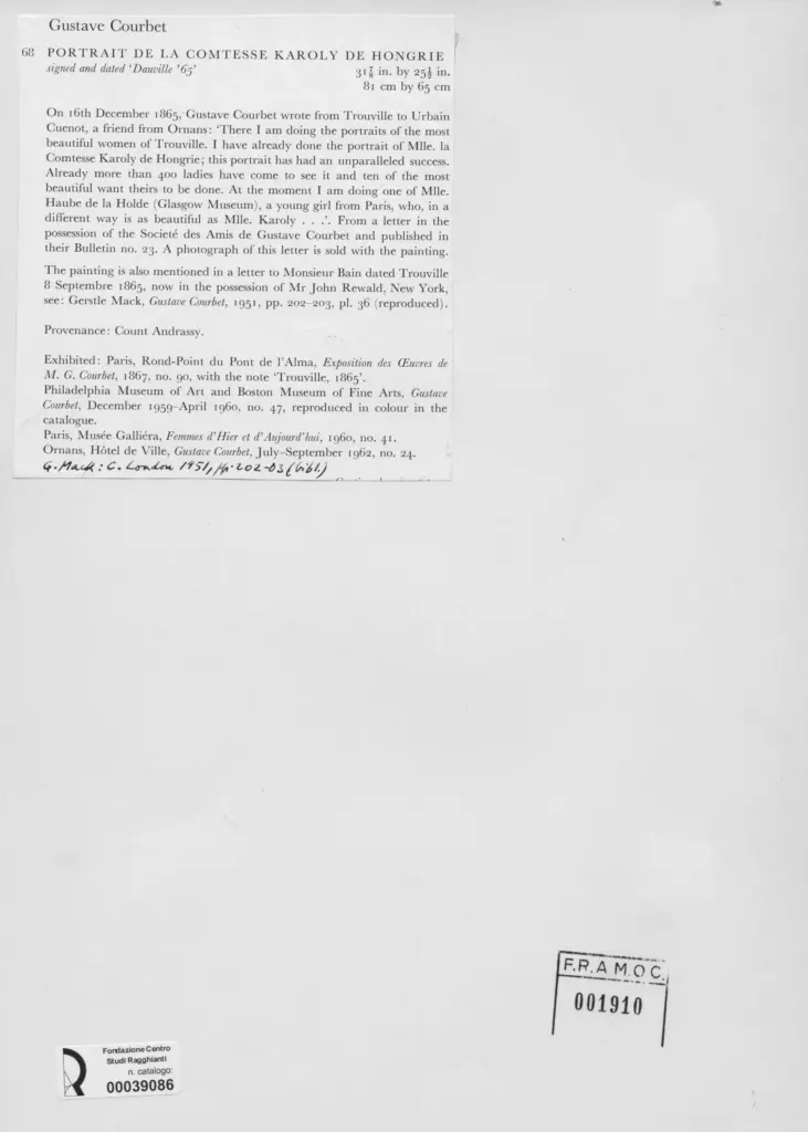 Gerstle Mack, Gustave Courbet, 1951, pp. 202-203,