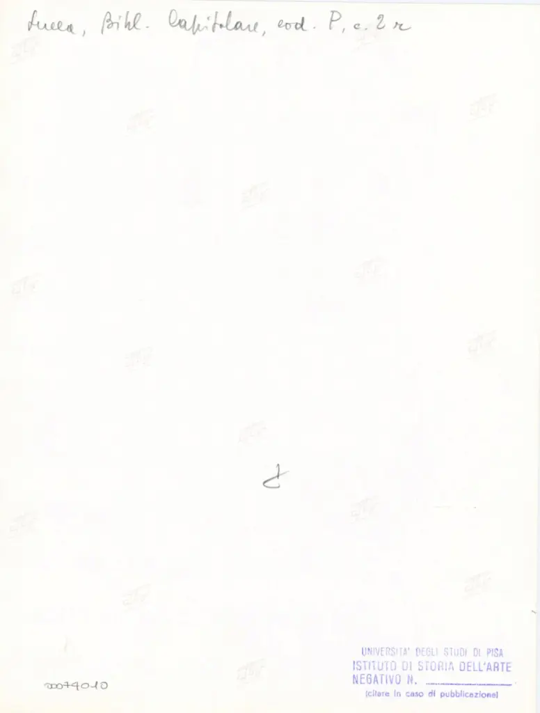 Università di Pisa. Dipartimento di Storia delle Arti , Anonimo italiano - sec. XII, prima metà - Lucca, Biblioteca Capitolare Feliniana, Ms. Passionario P, f. 2r, particolare , retro