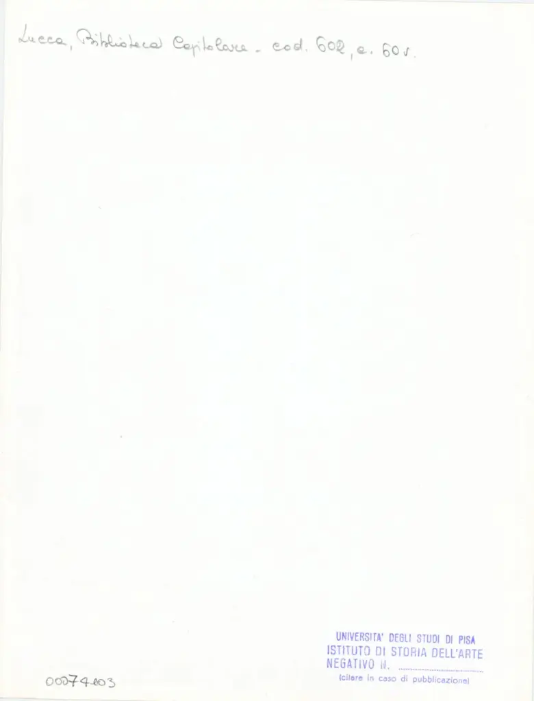 Università di Pisa. Dipartimento di Storia delle Arti , Anonimo italiano - sec. XII, inizio - Lucca, Biblioteca Capitolare Feliniana, Ms. 602, f. 60v, particolare , retro
