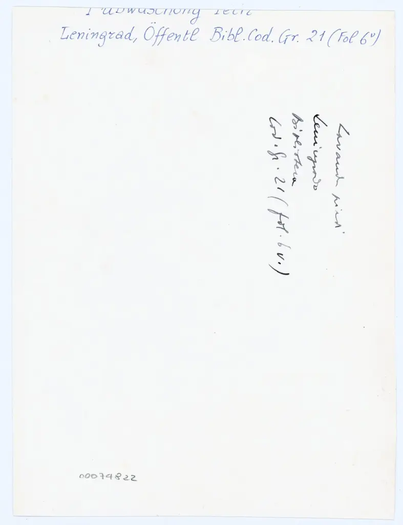 Si tratta della fotografia della riproduzione fotomeccanica del foglio 6v del manoscritto Gr. 21 della Biblioteca nazionale di Russia di San Pietroburgo (Evangeliario di Trebisonda) pubblicata in Weitzmann Kurt, Die byzantinische Buchmalerei des 9. und 10. Jahrhunderts mit 94 Abbildungen im Text und 93 Lichtdrucktafeln, Berlin, Mann, 1935, tav. LXVII, fig. 396. La miniatura a colori è visibile all'indirizzo https://ima.princeton.edu/digital-image-collections/view/47256 (data ultima consultazione: 12/02/2024).