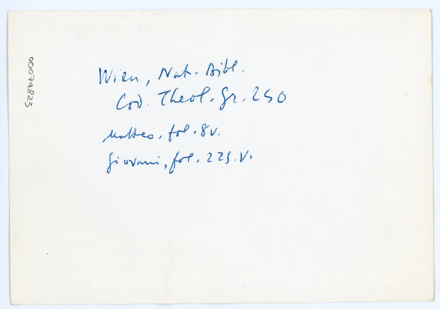 Anonimo , Wien, Nat. Bibl. - Cod. Theol. Gr. 240 - Matteo, fol. 8v. - Giovanni, fol. 225v. , retro