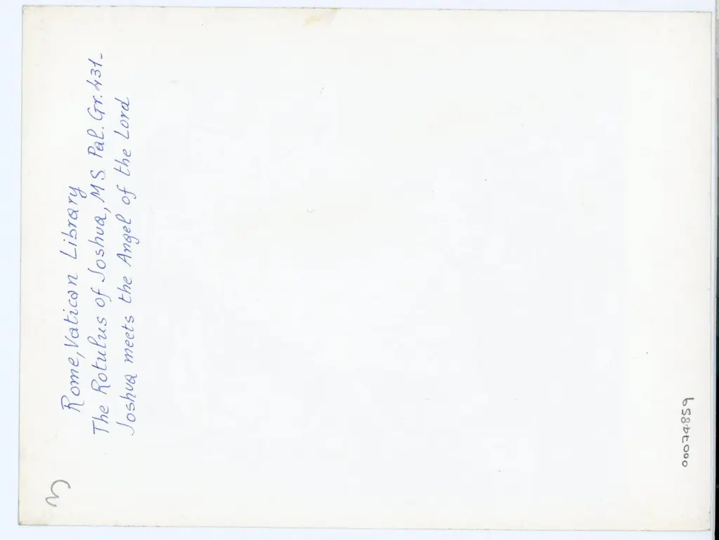 Si tratta della fotografia della riproduzione fotomeccanica del foglio [IVr] del codice Vaticano Palatino Greco 431 - parte B (noto convenzionalmente come Rotulo di Giosuè) della Biblioteca Apostolica Vaticana. Il manoscritto integralmente digitalizzato a colori è visibile agli indirizzi https://digi.vatlib.it/view/MSS_Pal.gr.431.pt.A (parte A) e https://digi.vatlib.it/view/MSS_Pal.gr.431.pt.B (parte B). Si veda anche la voce in Enciclopedia dell'Arte Medievale (Giosuè, Rotulo di, 1995, risorsa online). I siti sono stati consultati in data 16/01/2024.