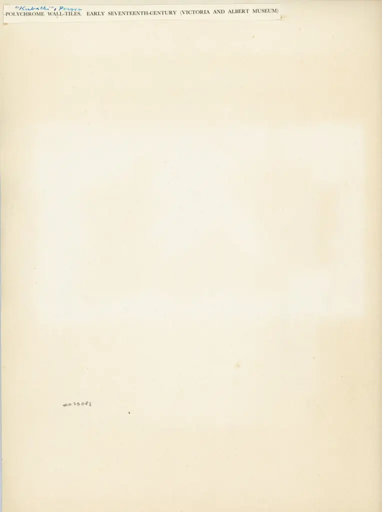 Si tratta della riproduzione fotomeccanica di sette piastrelle "Kubachi" cche potrebbe essere stata pubblicata in Lane Arthur, The So-Called 'Kubachi' Wares of Persia, in «The Burlington Magazine», LXXV (October 1939), pp. 156-163: pl. II.C. L'opera è visibile a colori all'indirizzo all'indirizzo https://collections.vam.ac.uk/item/O211276/tile-panel-unknown/ (data ultima consultazione: 18/06/2024).