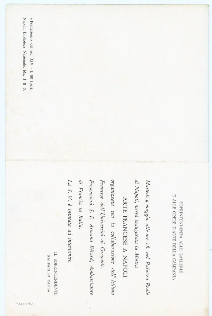 Si tratta della riproduzione fotomeccanica di un particolare del foglio 80 del manoscritto I.B.50 della Biblioteca Nazionale di Napoli con l'iniziale E(xultate) Deo adiutori nostro iubilate Deo.