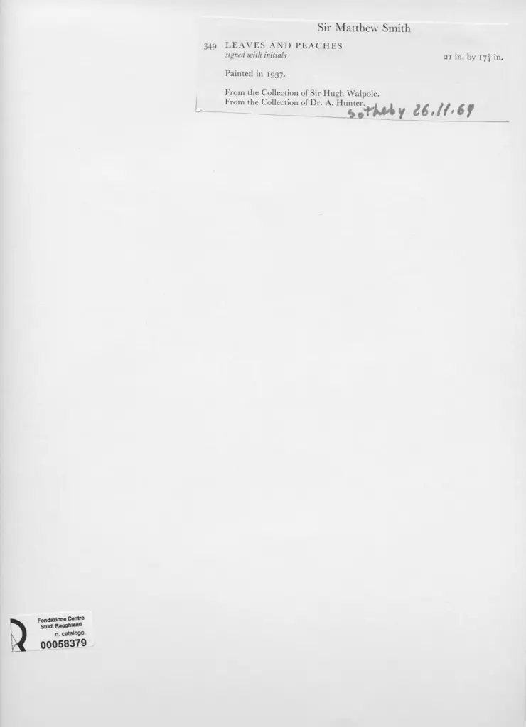 Anonimo , Smith, Matthew - sec. XX - Leaves and Peaches , fronte