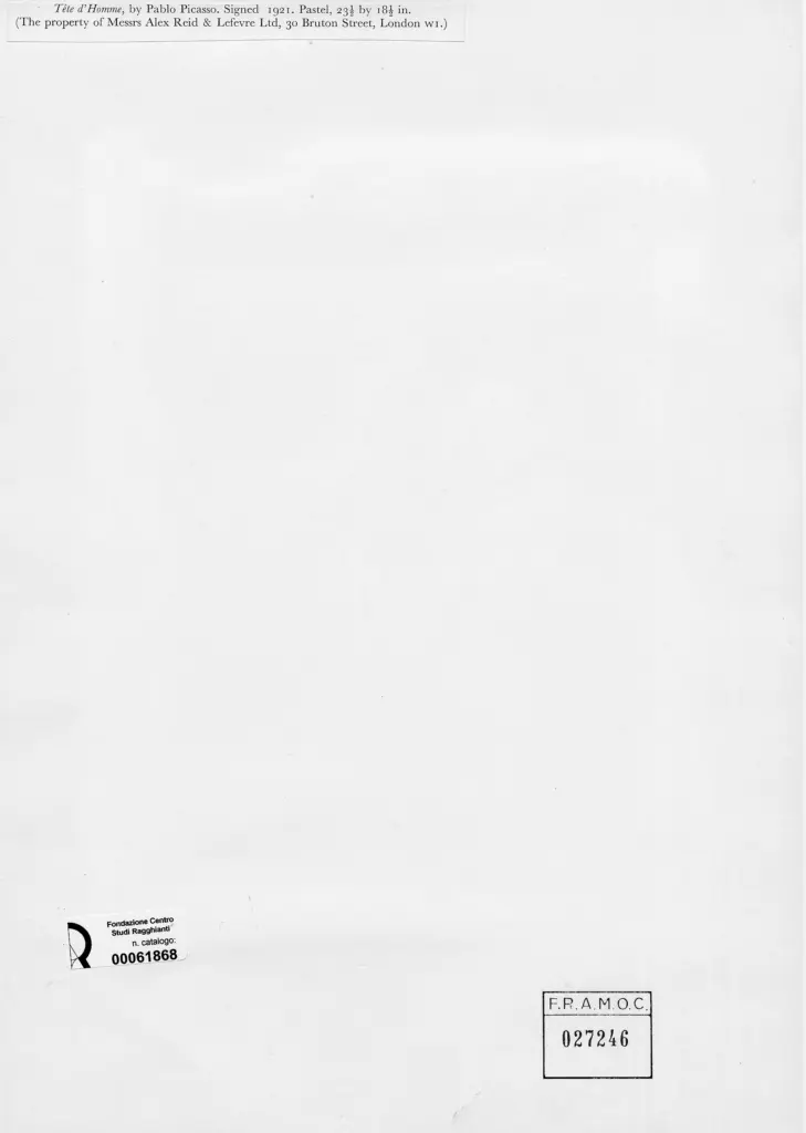 Anonimo , Picasso, Pablo - sec. XX - Testa d'uomo , retro